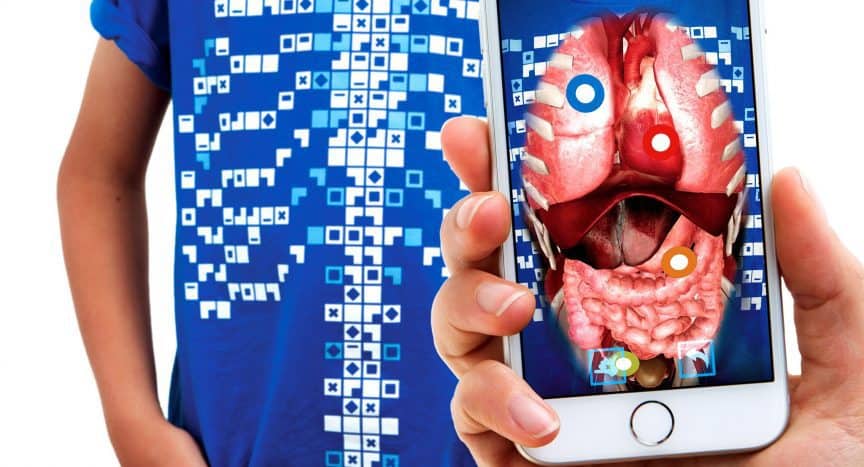 - When the app scans the code on the t-shirt you can isolate the internal systems using AR and VR technology